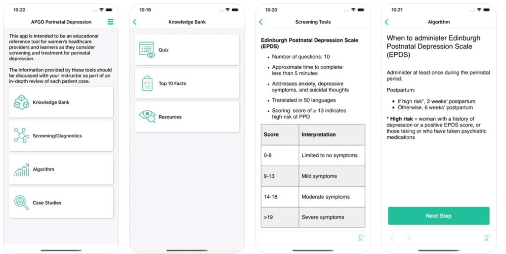 The Association of Professors of Gynecology and Obstetrics (APGO) has built several apps on pregnancy care to educate pregnant women to handle the 40 weeks of pregnancy.